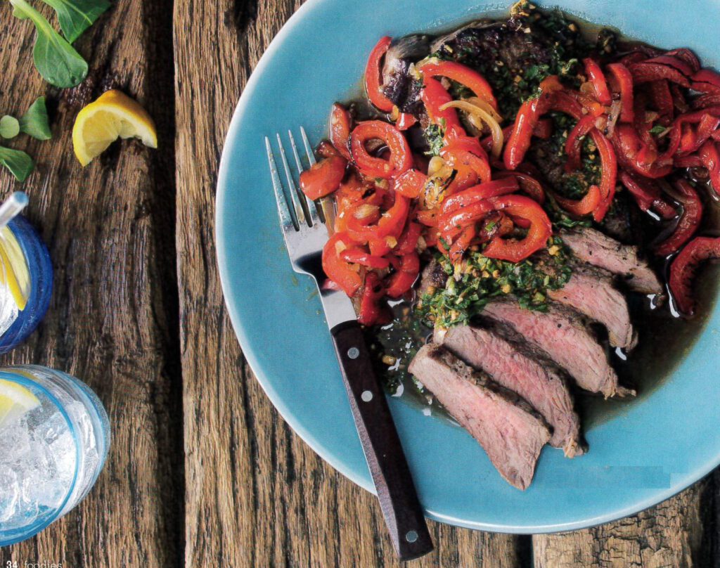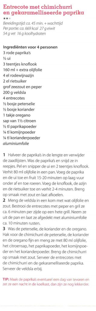 Entrecote met chimichurri en gekaramelliseerde paprika