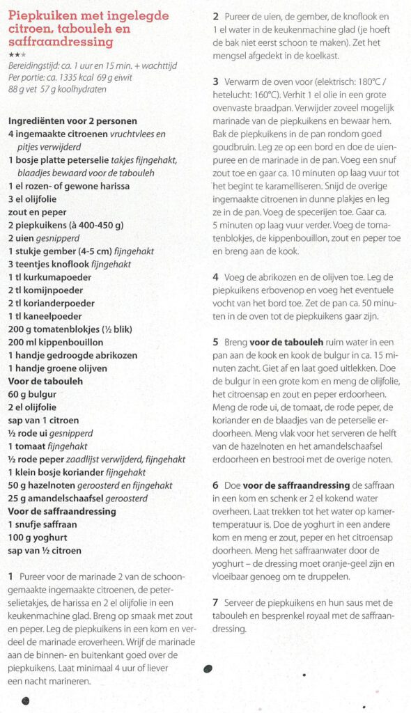 Piepkuiken met ingelegde citroen, tabouleh en saffraandressing