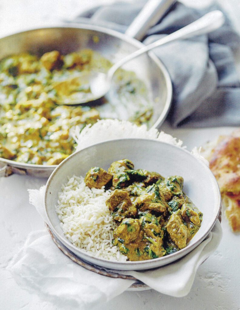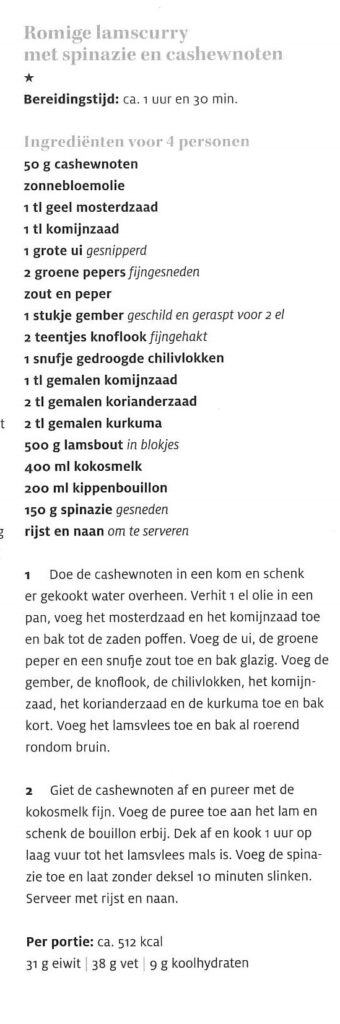 Romige lamscurry met spinazie en cashewnoten
