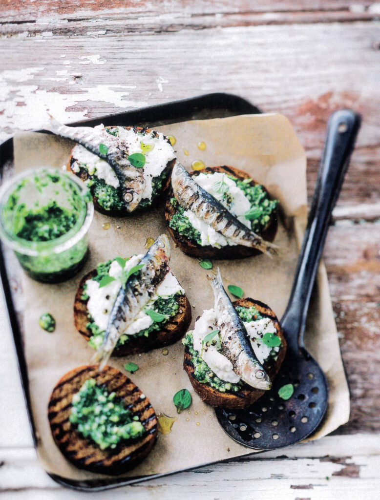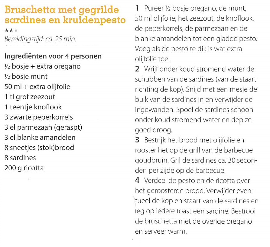 Bruschetta met gegrilde sardines