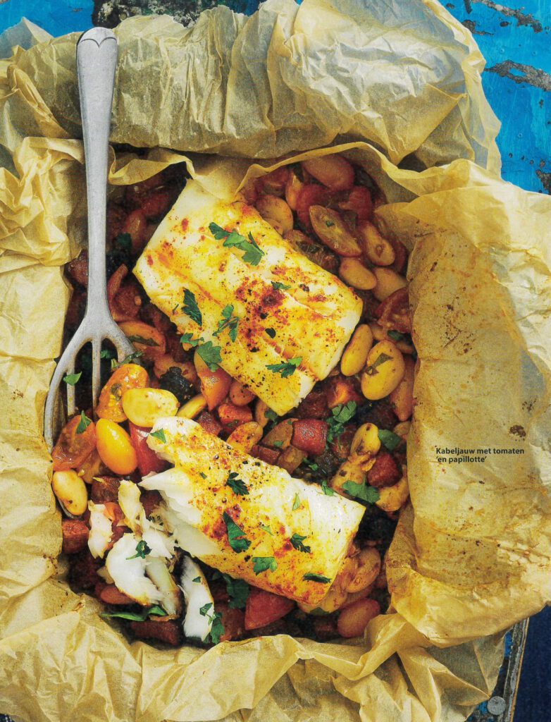 Home Pescetarische gerechten Kabeljauw met tomaten ‘en papillotte’